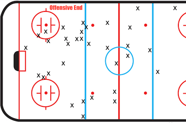 The location of the X’s inside the offensive zone are to be expected for a right winger coming down his strong side on odd-man rush opportunities.